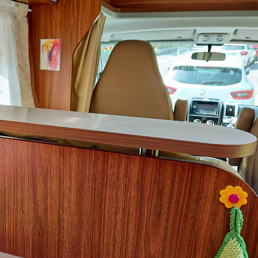 Notre planche de rangement au lieu des appuie-têtes dans ton camping-car