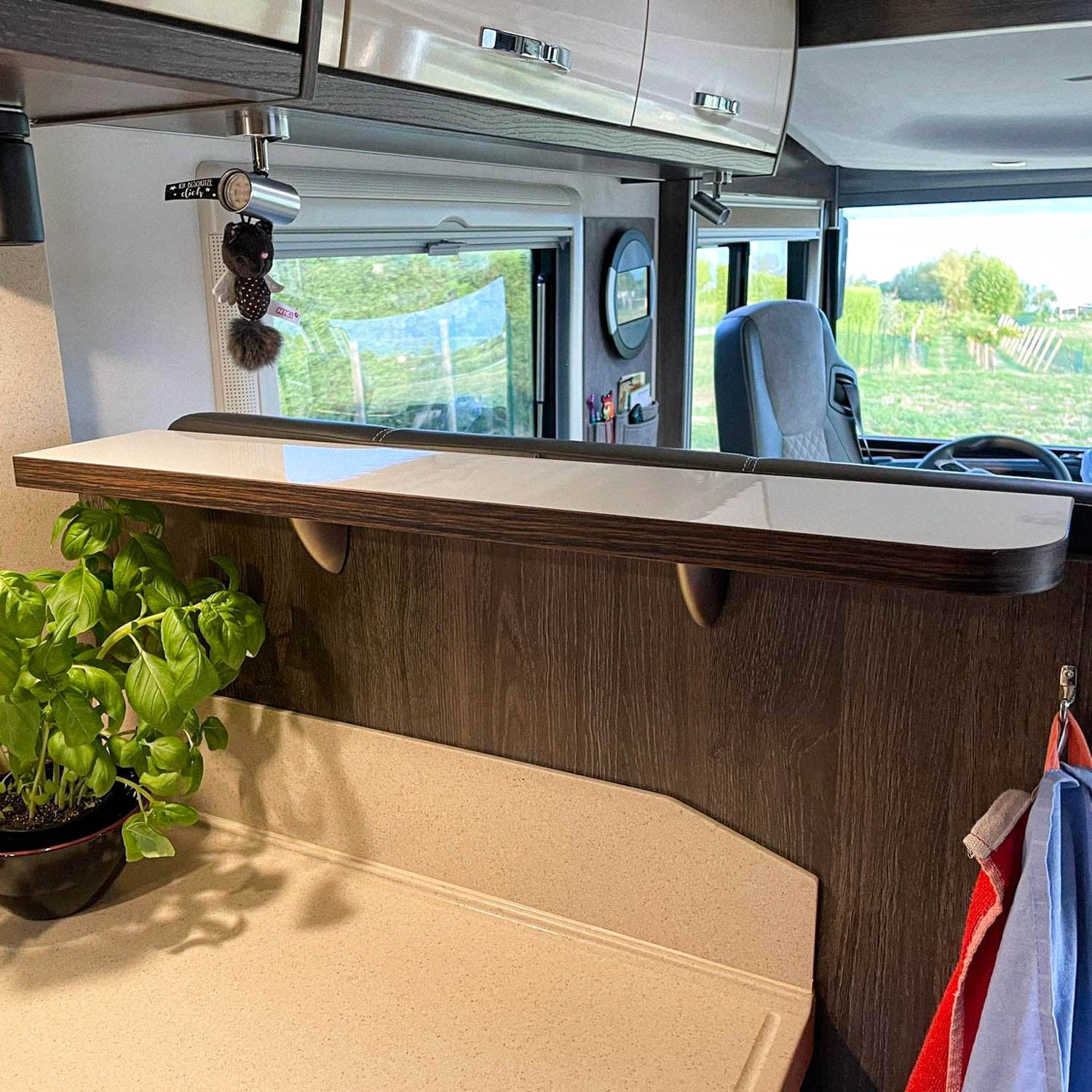 Notre planche de rangement au lieu des appuie-têtes dans ton camping-car