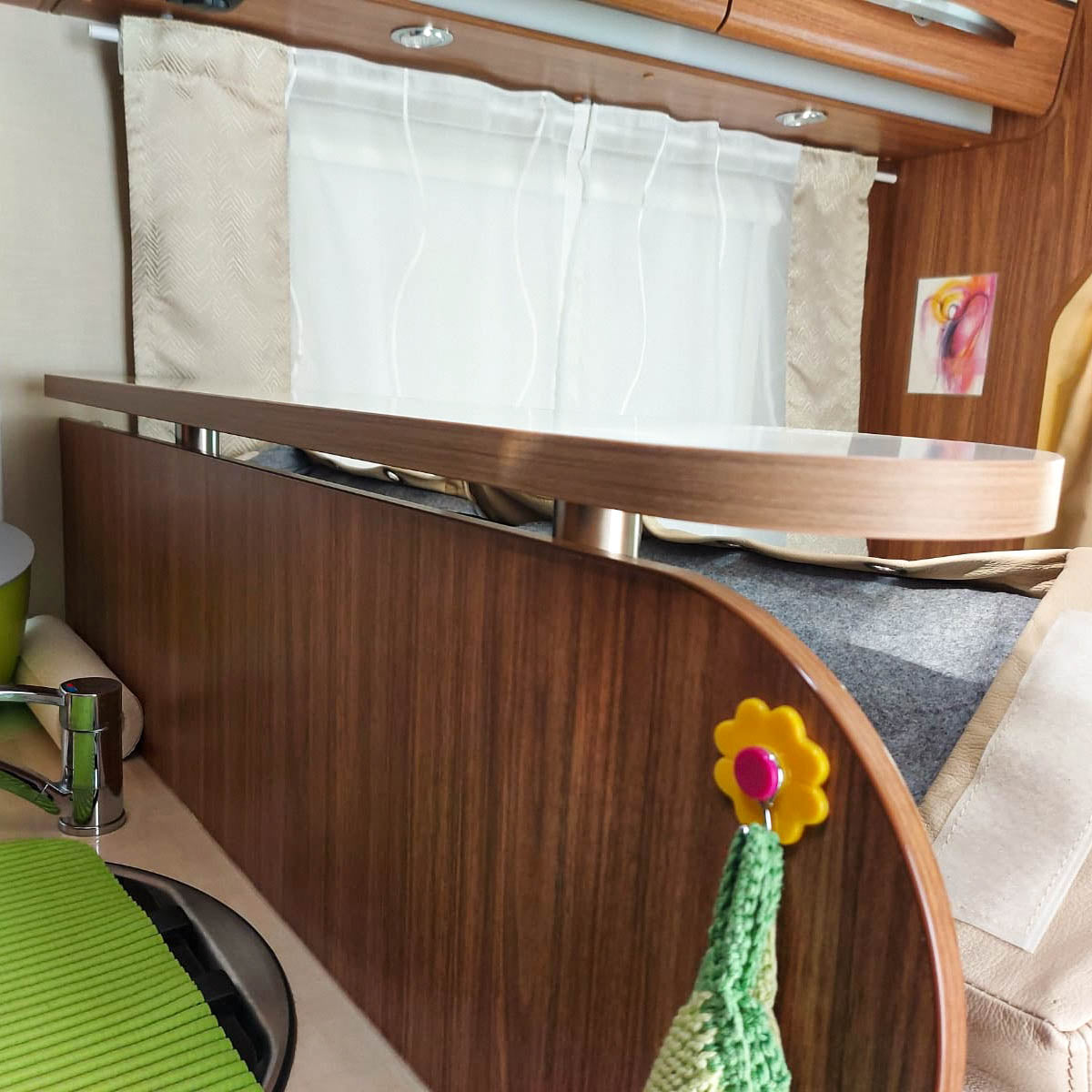 Notre planche de rangement au lieu des appuie-têtes dans ton camping-car