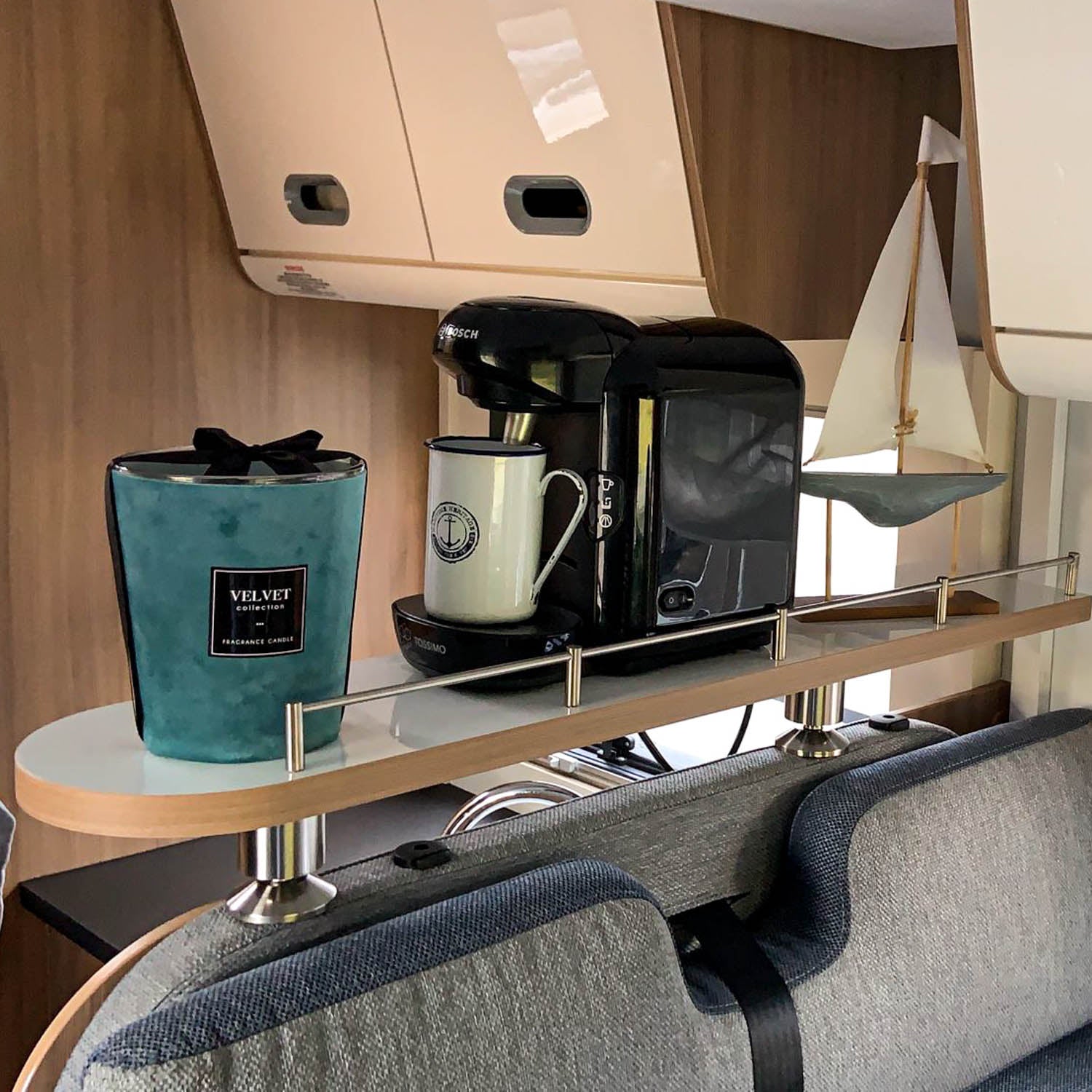 Notre planche de rangement au lieu des appuie-têtes dans ton camping-car