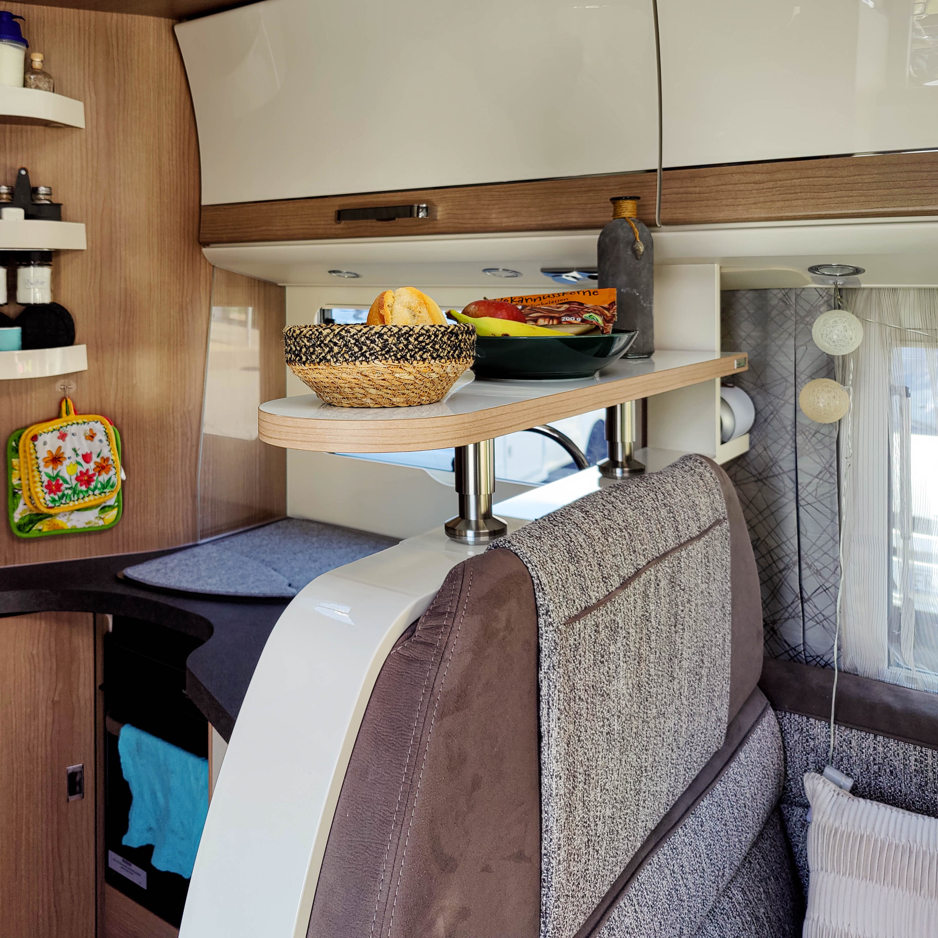 Notre planche de rangement au lieu des appuie-têtes dans ton camping-car