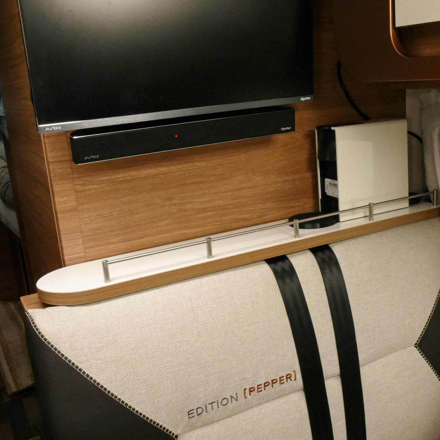 Notre planche de rangement au lieu des appuie-têtes dans ton camping-car